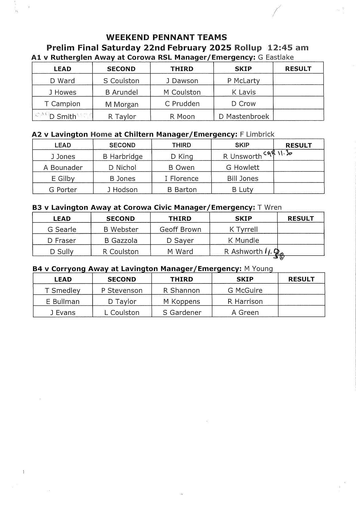 Pennant Fixtures & Results